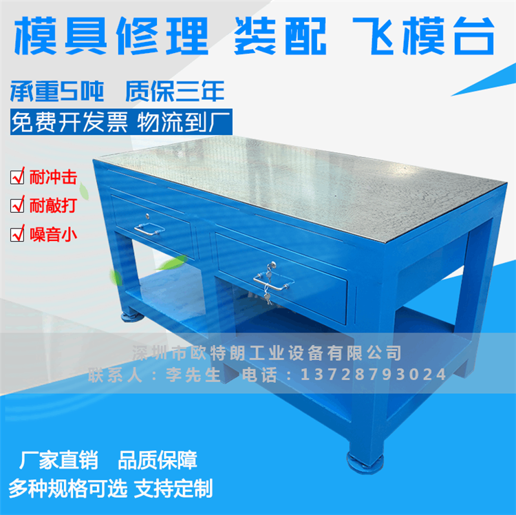 模具装配工作台采用加厚钢材焊制,承重力效果好,表面整平度好,适用于各种检验工作,精度测量用的基准平面,主要用于机械工件检验测量中的基准面,检查零件的尺寸精度或行为偏差,并可作精密划线,在机械制造检验中是常用的平面基准量具.因此该产品的精度稳定,耐磨性能好。
